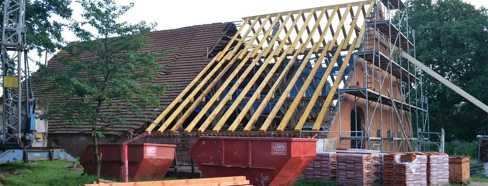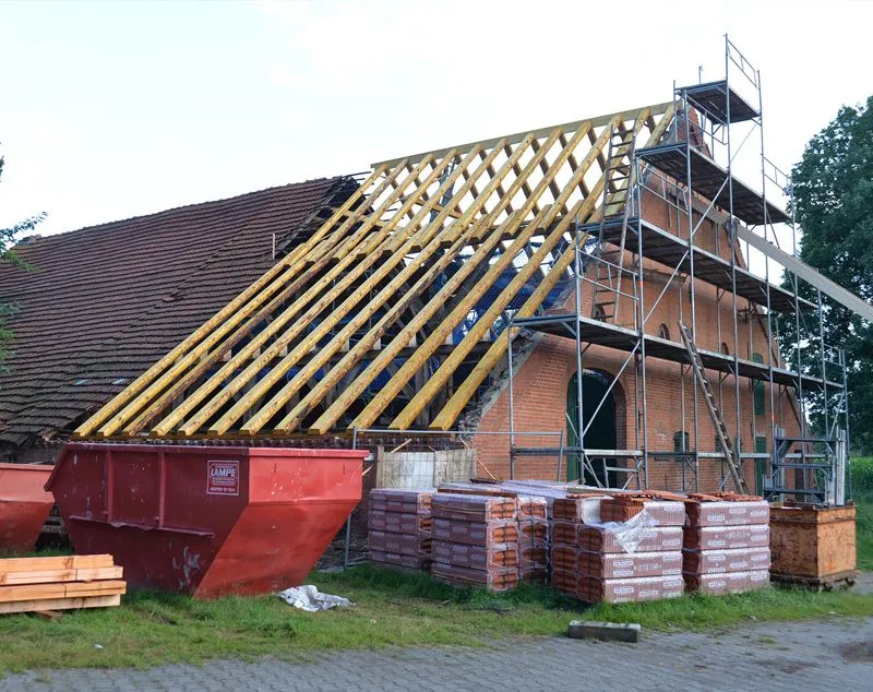 Dank der unserem Bauunternehmen angeschlossenen Zimmerei sind wir in der Lage, neben Rohbauten die gesamten Zimmermanns- und Dachdeckerarbeiten aus einer Hand anzubieten. Unsere Mitarbeiter sind gelernte Zimmerer, die für beste Qualität bürgen und mit unserer Baufirma „Hand in Hand“ arbeiten. So garantieren wir einen zügigen Baufortschritt ohne Warte- und Abstimmungszeiten durch externe Zulieferer. Unser Meisterbetrieb bietet Ihnen alles zum Thema Bau und Sanierung aus einer Hand!